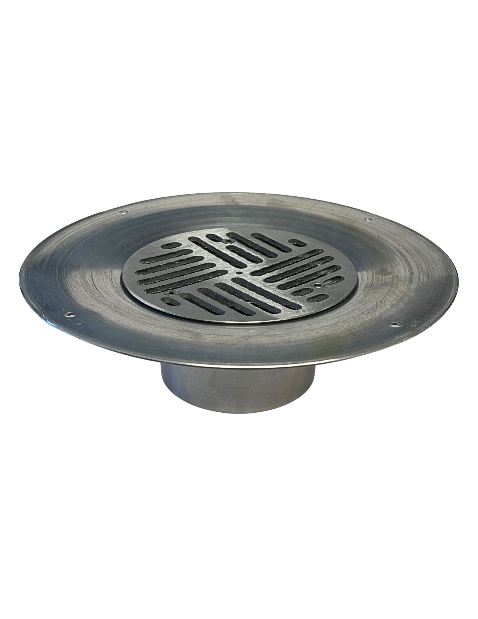 Features: Composed of 3 parts: the grate, the clamp collar and the drain body. It has a 6 1/2″ deck opening with the 3 deck flange screws set at 7 3/4″ diameter. The flange is 8″ in diameter..