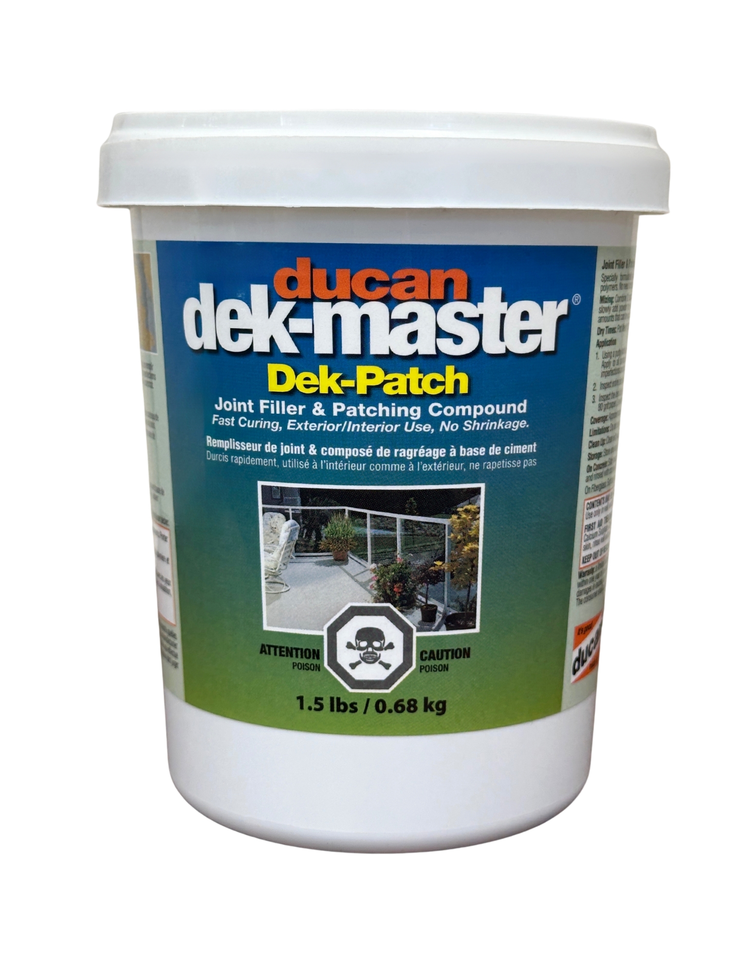 Features: Easy to apply, fast dry time, sandable, mixes easily with 2 parts Dek-Patch, 1 part water.